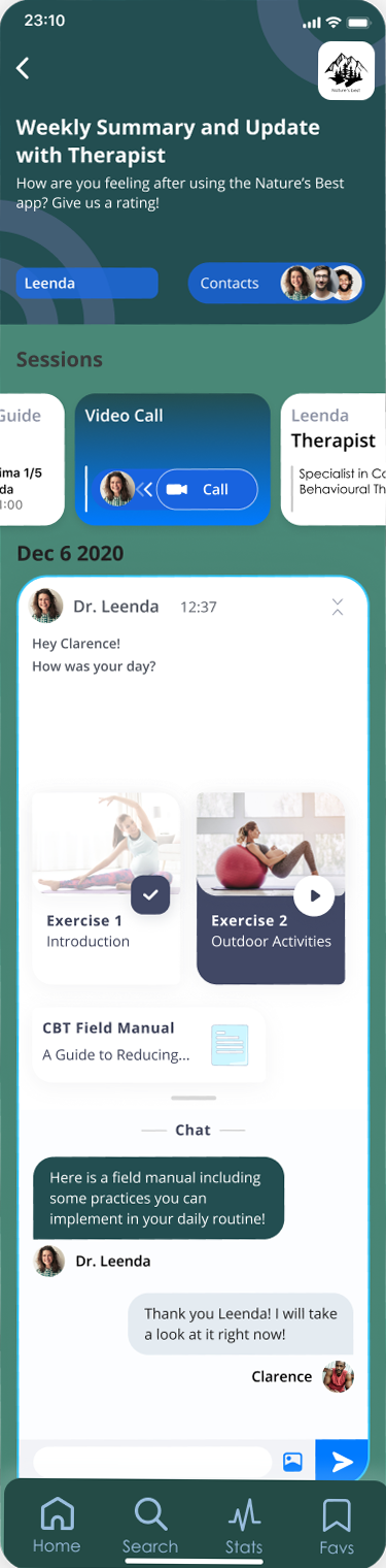 Enhance mental well-being by providing accessible, nature-integrated mental health support, leveraging the proven benefits of nature in cognitive behavioral therapy to reduce anxiety and foster connection, especially for those in remote areas, frequent travelers, or facing barriers to in-person care.